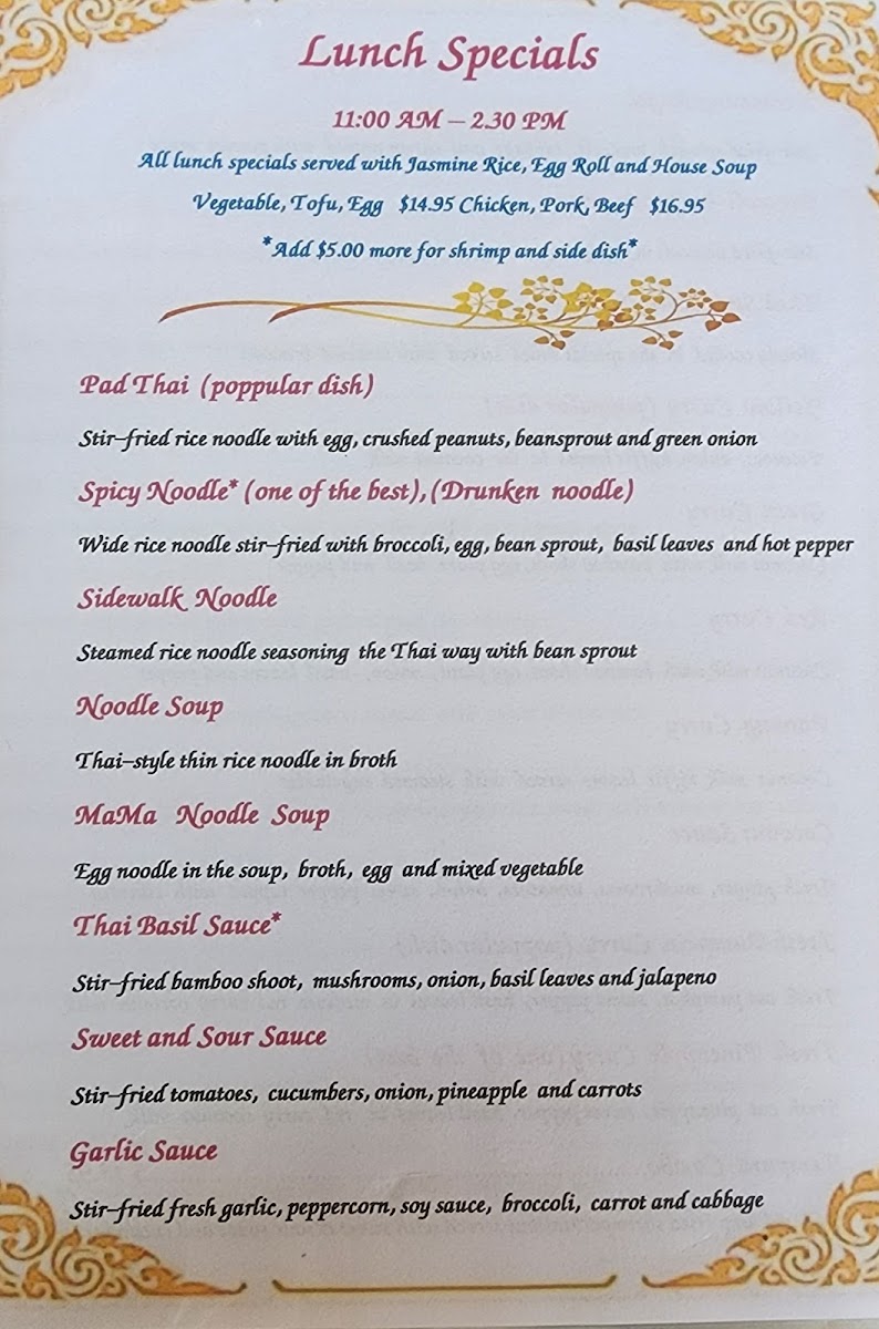 The atmosphere reflects the warmth of Thai culture, adorned with art pieces directly from Thailand, enhancing your dining escape. With friendly, attentive service and a willingness to accommodate dietary restrictions, Alaska Taste of Thai invites everyone to savor their extensive menu, featuring popular options like yellow chicken curry and spicy wide noodles.